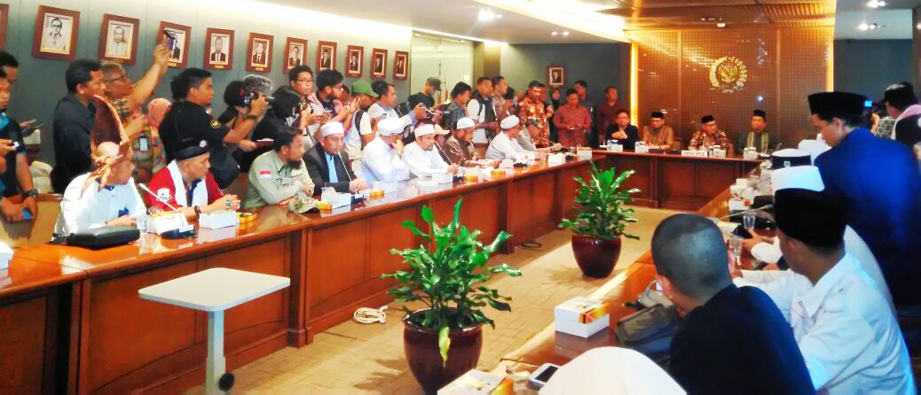 Wartapilihan.com, Jakarta –Di tengah terik matahari siang itu, puluhan ribu umat Islam menyampaikan aspirasinya di depan Gedung DPR/MPR RI. Mereka menuntut pencabutan Perppu Ormas dan menolak kebangkitan PKI. Sekitar 50 delegasi massa aksi 299 diterima oleh pimpinan DPR RI dan anggota DPR RI di Gedung Nusantara III, Komplek Parlemen, Senayan, Jakarta Pusat, Jumat (29/9).