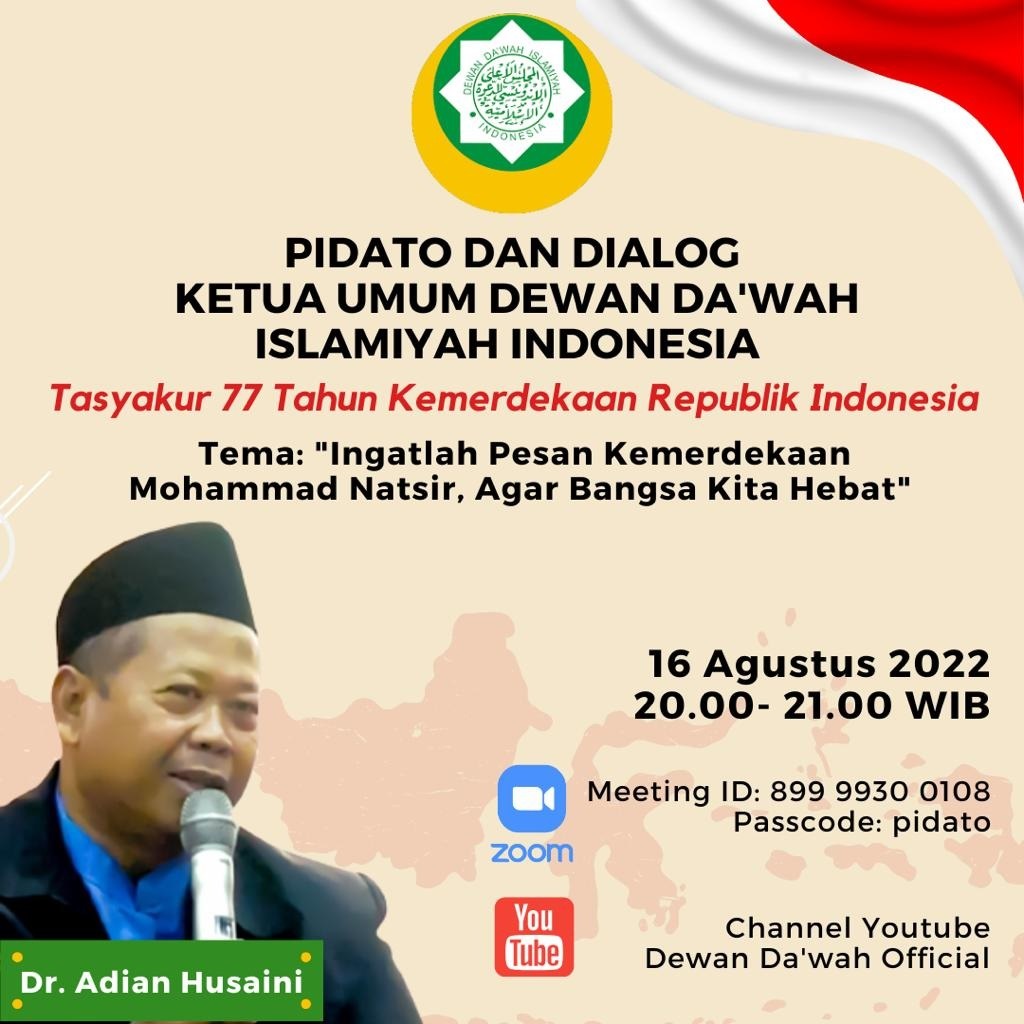 Menyambut peringatan 77 tahun Kemerdekaan RI, pada 16 Agustus 2022, saya menyampaikan Pidato Tasyakkur Kemerdekaan. Acara yang digelar secara online itu berlangsung cukup semarak, dihadiri oleh lebih dari 500 peserta.
