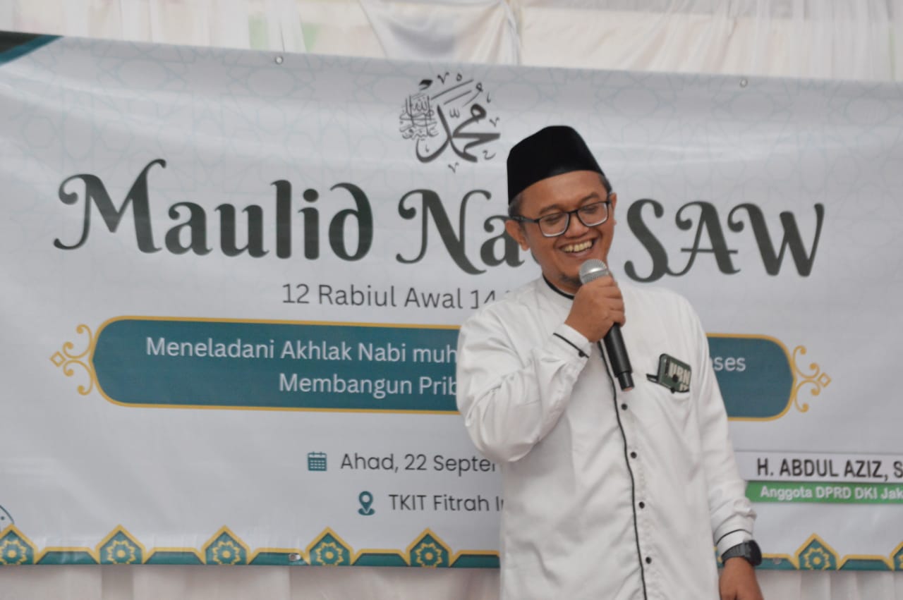 JAKARTA — Anggota DPRD DKI Jakarta Fraksi PKS H. Abdul Aziz, S.Kom., S.Si mengajak warga Kota Bambu Utara (KBU) dan sekitarnya, Jakarta Barat, untuk mengikuti peringatan Maulid Nabi Muhammad SAW di aula TKIT Fitrah Insani pada Ahad (22/9) lalu.