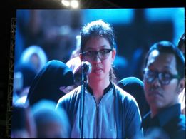 Banyak peserta nampak gelisah. Bukan karena hawa hangat yang menyesaki peserta, tapi karena tidak ada penerjemah di atas panggung. “Gimana ini kok nggak ada penerjemah,” kata Pak Joko warga Cimanggis Depok. Beberapa orang terlihat memakai headset dan memegang handphone-nya bersikap lebih tenang.