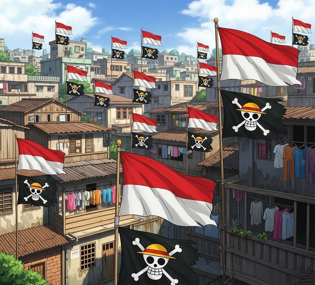 Indonesia heboh beberapa hari belakangan ini. Bukan karena kerusuhan, tapi karena gambar tengkorak bertopi jerami berkibar di mana-mana. Di truk, di kampus, dan di dinding dinding kota. Simbol itu bukan ancaman perang, melainkan Jolly Roger dari One Piece, anime legendaris yang kini berubah jadi bahasa protes jalanan.
