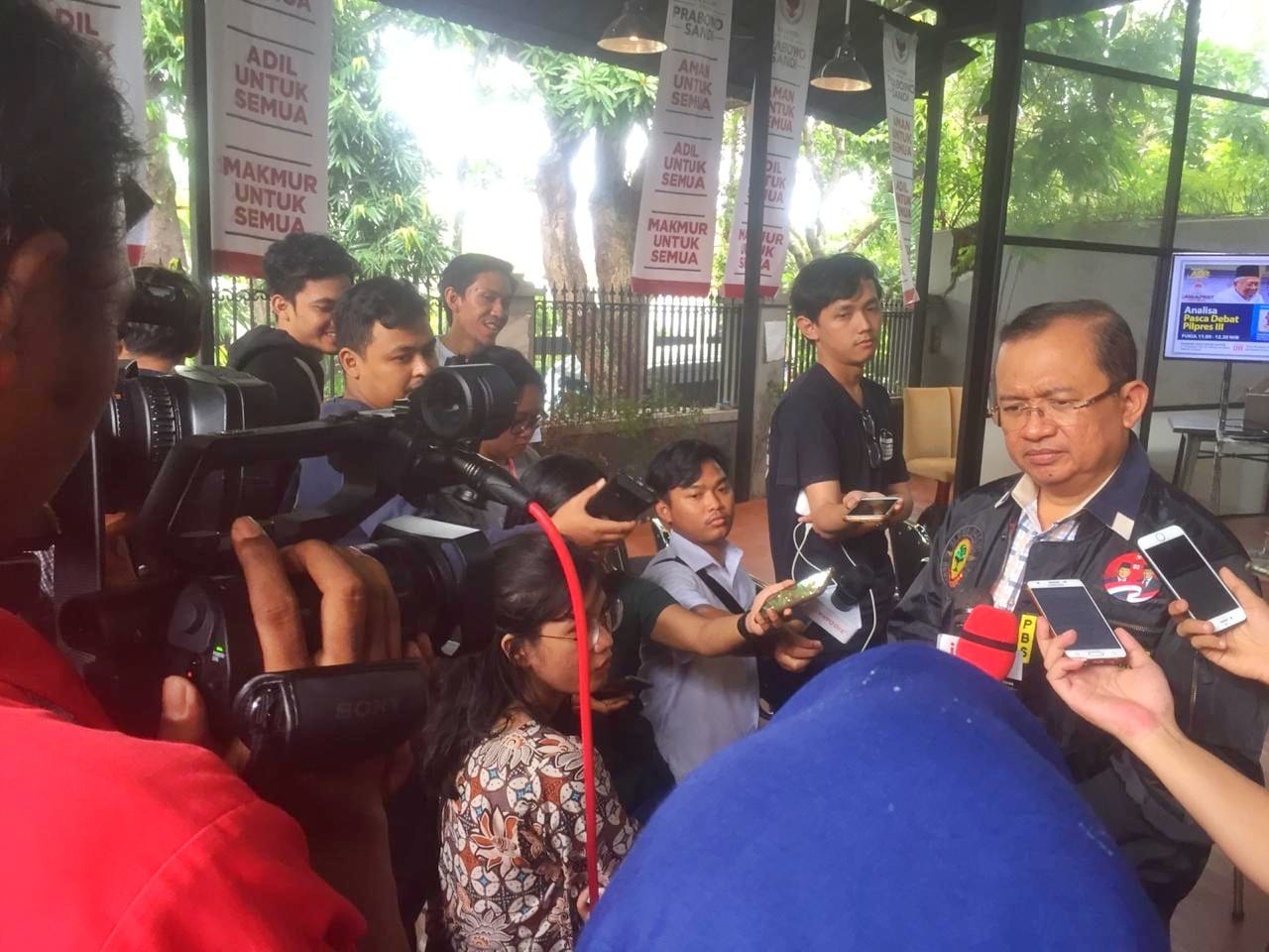 “Itu telah menjadi momentum puncak bagi Sandiaga Uno ketika menyampaikan closing 4 menit terakhir yang itu puncak dari semua perdebatan antara dua calon tersebut semalam,” ujar Priyo Budi dalam diskusi Pasca Debat di Prabowo-Sandi Media Center, Jalan Sriwijaya I nomor 35, Jakarta, Senin (18/3).