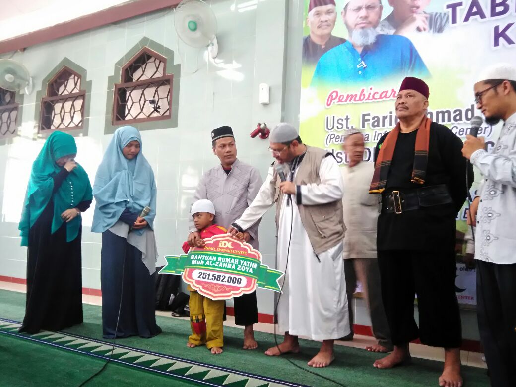Dalam kesempatan tersebut, Siti Zubaidah mendapatkan Infaq sebesar Rp 250 juta dari Infaq Dakwah Center (IDC) yang sudah dialokasikan untuk membeli rumah.