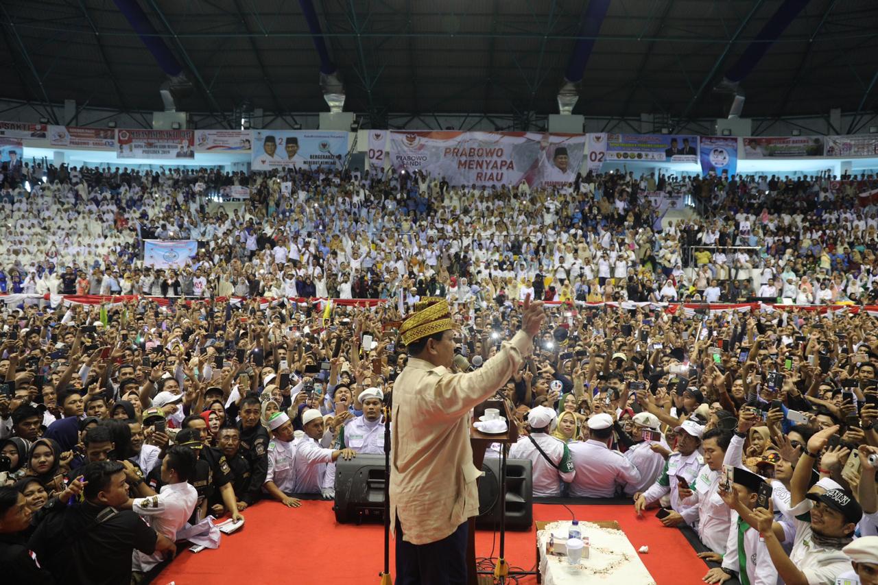 “Luar biasa Pekanbaru ini. Luar biasa riau ini. Semangatnya luar biasa. Apa lagi emak-emaknya,” ucap Prabowo disambut tepuk tangan ribuan masyarakat.