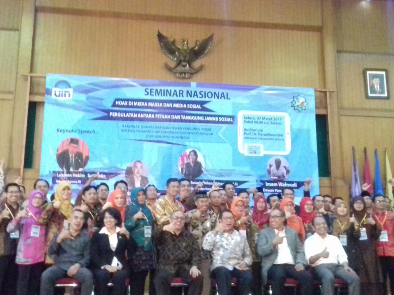 Ketua Umum DPP ASKOPIS Muhammad Zamrani M.Si , Direktur Pendidikan Tinggi Agama Islam Prof. Nizar, Sekretaris Prodi KPI Masran M.Ag, Nukman Luthfie Pakar Teknologi Informasi dan Media Sosial, Dra. Rosarita Niken Widiastutu Dirjen Informasi dan Komunikasi Publik Kementerian Komunikasi dan Informatika, dan Imam Wahyudi Komisioner Dewan Pers. I