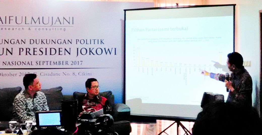 “Sampai saat ini belum ada tokoh lain yang kompetitif terhadap Jokowi. Kecuali lawan lama yaitu Prabowo, dan itu pun cenderung stagnan. Sementara, meskipun belum ada dukungan kompetitif, dukungan terhadap Jokowi terus mengalir,” kata Direktur Saiful Mujani Research dan Consulting (SMRC) Jayadi Hanan dalam penyampaian survey nasional ‘Kecenderungan Dukungan Politik, Tiga Tahun Presiden Jokowi’ di bilangan Menteng, Jakarta Pusat, Kamis (5/10).
