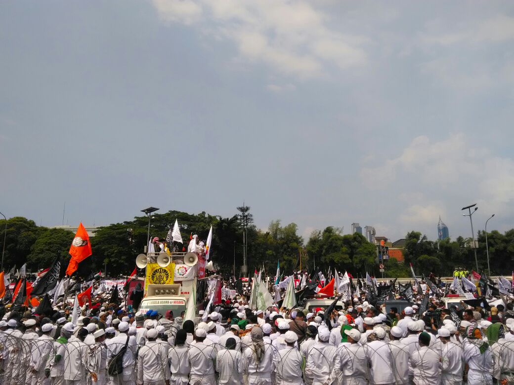 Wartapilihan.com, Jakarta –Puluhan ribu umat Islam mulai bergerak mendatangi depan Gedung DPR/MPR usai melaksanakan shalat Jumat di sekitar area Senayan, Jakarta Pusat. Dalam tuntutanya nanti, massa aksi 299 menuntut dua agenda. Pertama, pencabutan peraturan pengganti perundang-undangan (Perppu) ormas. Kedua, penolakan bangkitnya komunis di Indonesia.