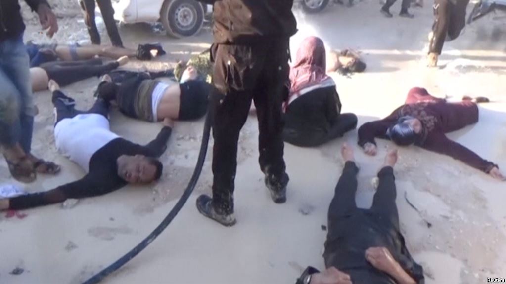 Pejuang dan aktivis oposisi mengatakan pasukan pro-pemerintah telah menggunakan senjata kimia dan bom yang mengandung klorin pada berbagai kesempatan. Mereka mengatakan serangan senjata kimia di Idlib, Selasa (4/4), menewaskan puluhan orang. Pemerintah Suriah membantah pernah menggunakan senjata tersebut.