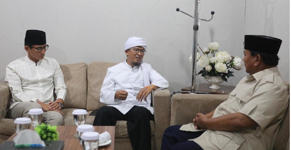 Wartapilihan.com, Jakarta —Calon Presiden dan Calon Wakil Presiden nomor urut 02, Prabowo Subianto dan Sandiaga Salahuddin Uno bertemu Pimpinan Pondok Pesantren Daarut Tauhid Abdullah Gymnastics atau yang akrab disapa Aa Gym sebelum memulai debat sesi terakhir pada malam nanti.