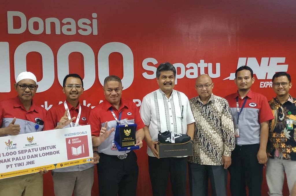 Wartapilihan.com, Jakarta – Perusahaan jasa logistik, PT JNE menjalin kerjasama dengan Badan Amil Zakat Nasional (BAZNAS) untuk menyalurkan donasi 1.000 pasang sepatu senilai Rp 240.000.000,-. Donasi tersebut diberikan untuk anak-anak yang menjadi korban bencana di Palu dan Lombok, dan juga anak-anak yang kurang beruntung dari sisi ekonomi di daerah Jabodetabek.