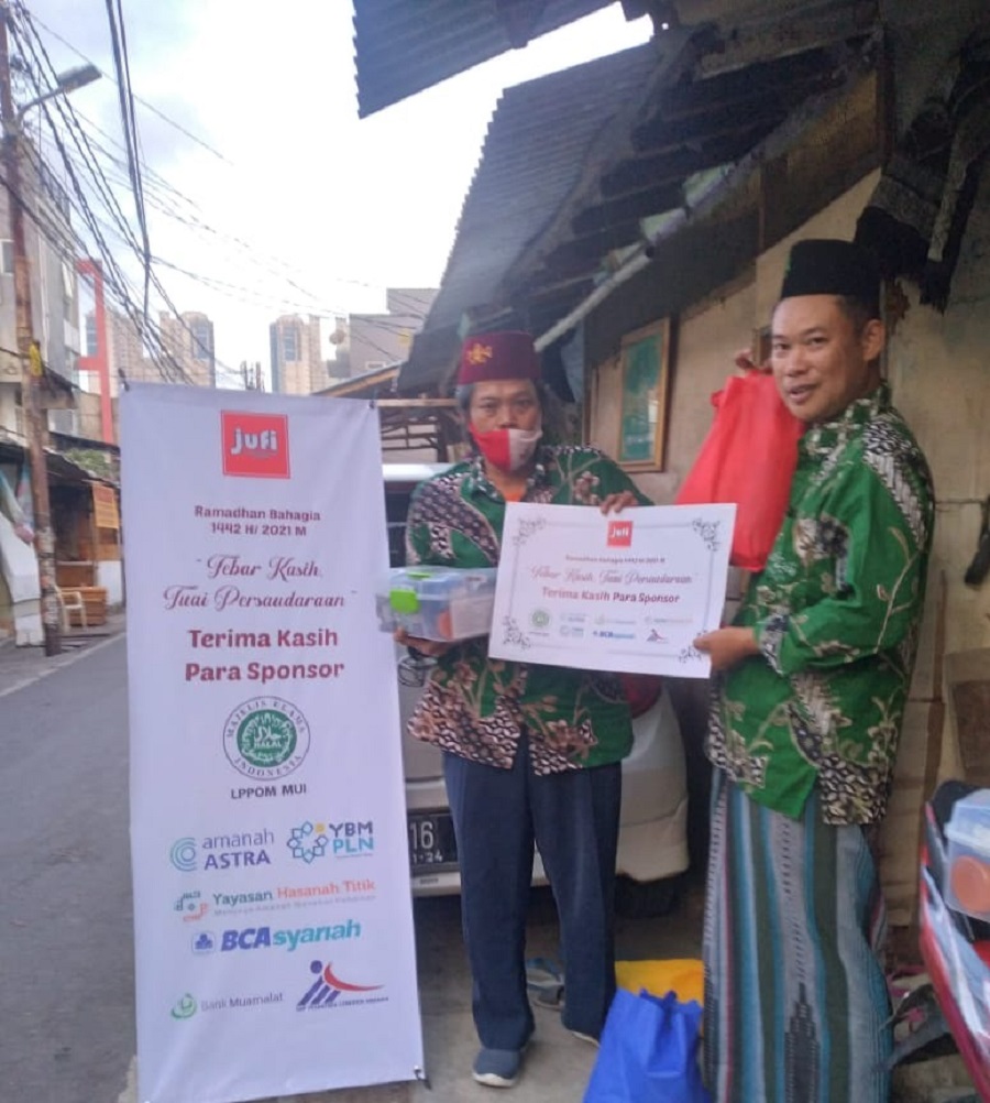 Program bantuan paket pangan Lebaran merupakan rangkaian kegiatan Ramadhan Bahagia 2021 yang diselenggarakan Jufi. Sebanyak 125 paket pangan Lebaran senilai Rp200.000 per paket disebar di Bekasi, Depok, Jakarta, dan Tangerang.