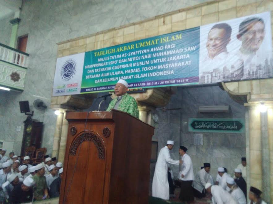 Sementara itu, pimpinan Perguruan Asy Syafiiyah KH Abdul Rasyid Abdullah Syafii dalam sambutannya mengatakan, tasyakuran ini adalah wujud syukur umat Islam atas terpilihnya gubernur Muslim. “Inilah sikap umat Islam yang imannya benar dengan memperjuangkan pemimpin Muslim, karena itulah Allah berikan kemenangan,” ujarnya.