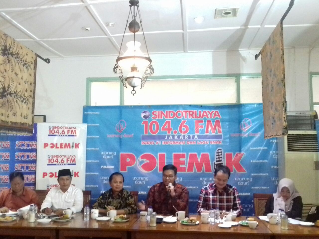 Siang ini (4/3) Sabtu, Radio SindoTrijaya Network menggelar diskusi Kawal Pilkada DKI di Warung Daun, depan Taman Ismail Marzuki (TIM), Menteng, Jakarta Pusat. Dalam diskusi ini hadir Ketua KPUD DKI Jakarta Sumarno, Anggota Bawaslu DKI Achmad Fachruddin, Jerry Sambuaga dari Tim Sukses pasangan Ahok – Djarot, Yupen Hadi dari Tim Sukses pasangan Anies – Sandi, dan Titi Anggraini selaku Direktur Eksekutif PERLUDEM.