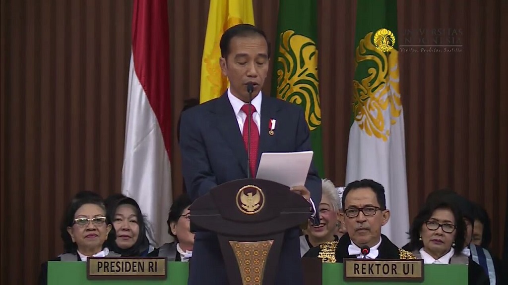 Kedatangan Jokowi ke Kampus Universitas Indonesia dalam rangka Dies Natalis UI ke-68 di Depok hari ini, Jum’at 2 Februari disambut oleh tiupan peluit dan kartu kuning dari seorang Ketua Badan Eksekutif Mahasiswa Universitas Indonesia (BEM UI), Zaadit Taqwa.