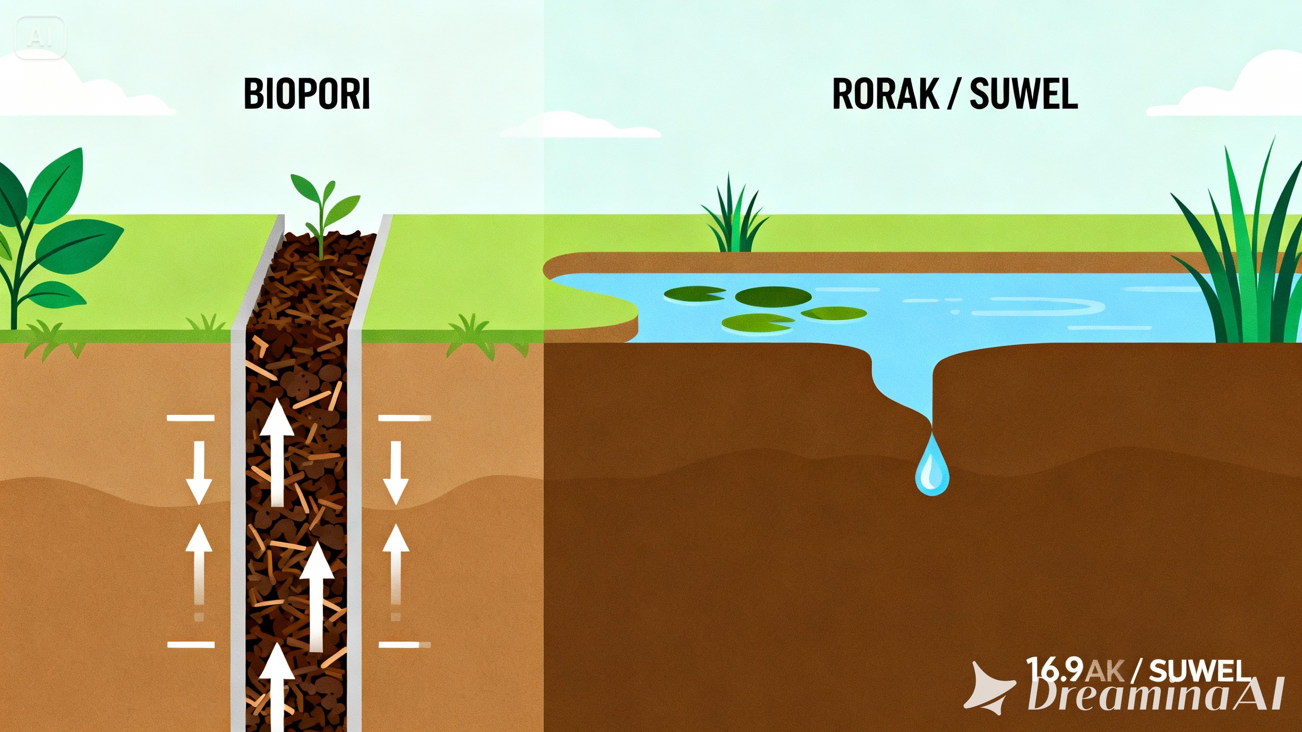 Kunci untuk memahami pilihan desain ini terletak pada perbedaan fundamental antara Biopori dan sistem Rorak yang terintegrasi.