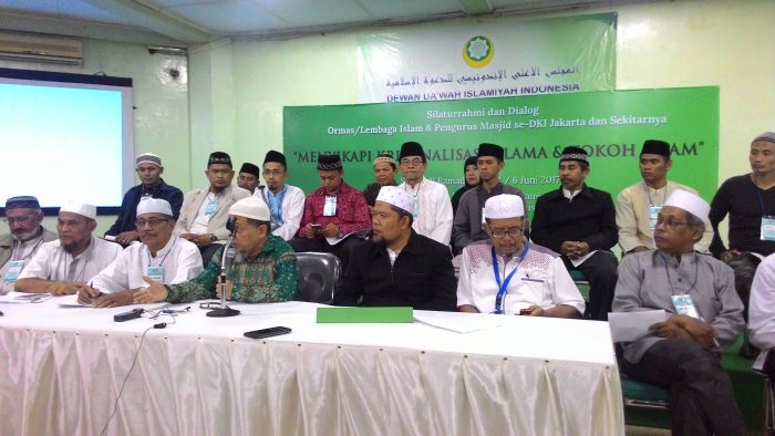 Wartapilihan.com, Jakarta – Sejumlah organisasi masyarakat (Ormas), lembaga Islam, dan Pengurus Masjid se-Jabodetabek mitra Dewan Dakwah Islamiyah Indonesia DKI Jakarta, menolak kriminalisasi ulama dan aktivis Islam. Mulai dari penahanan Sekjen Forum Umat Islam M Al Khaththath, Ketua Taruna Islam Alfian Tanjung, Ketua Umum DPP FPI Habib Rizieq di statuskan buron (DPO = fafatr pencarian orang), hingga upaya pembubaran ormas Islam Hizbut Tahrir Indonesia (HTI).