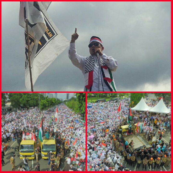 “Kita hadir di sini untuk menentang kebijakan Presiden Amerika Serikat Donald Trump yang secara sepihak mendeklarasikan Yerussalem sebagai ibukota Israel, karena kebijakan itu adalah penindasan, kezaliman dan penjajahan. Kita akan perangi seluruh bentuk penjajahan di muka bumi ini,” tegas Jazuli disambut pekik merdeka dan takbir.