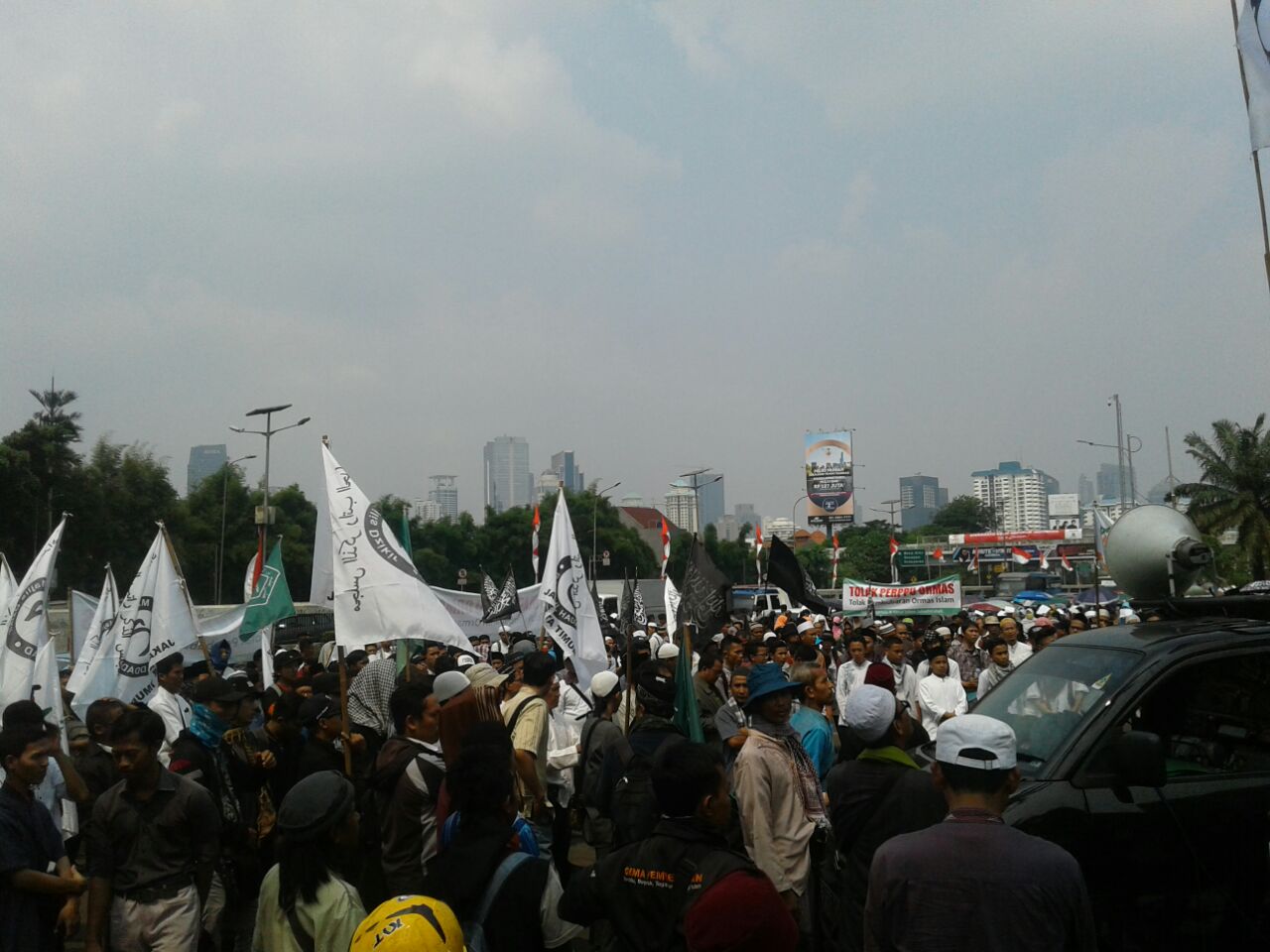 “Dari berbagai kajian para ahli hukum antara lain Bapak Menejer Nasution (Komnas HAM) menyimpulkan bahwa Perppu Ormas cacat lahir, substansi, metodologi, pikir dan faham sehingga sangat tidak layak untuk diberlakukan dalam situasi saat ini,” kata Kholilulloh di depan Gedung DPR/MPR, Komplek Parlemen, Senayan, Jakarta Pusat, Senin (21/8).