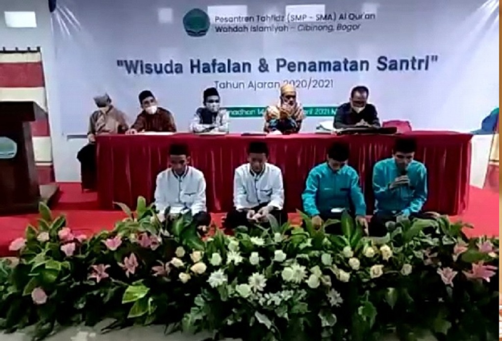 Wartapilihan.com, Bogor – Kegiatan ini dilaksanakan di Pesantren Tahfidz Wahdah Islamiyah Cibinong, Kabupaten Bogor, Jawa Barat. Sementara para walisantri menyimak prosesi wisuda secara daring melalui aplikasi Zoom Meeting.