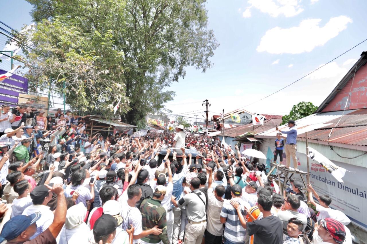 “Saya sejak pukul Dzuhur tadi disini, menanti Bapak Prabowo, yang lain ada yang masih di Mall, di menara Bosowa dan sebagian masih di sekitaran Jalan Pettarani menuju kesini,” kata Daeng Tolla Warga Makassar.