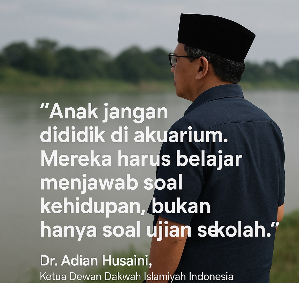 “Anak jangan dididik di akuarium,” ucapnya lantang. “Mereka harus dilatih memahami persoalan hidup: dari masalah diri, keluarga, hingga masyarakat. Bukan sekadar menjawab soal ujian sekolah, tapi menjawab soal kehidupan.”