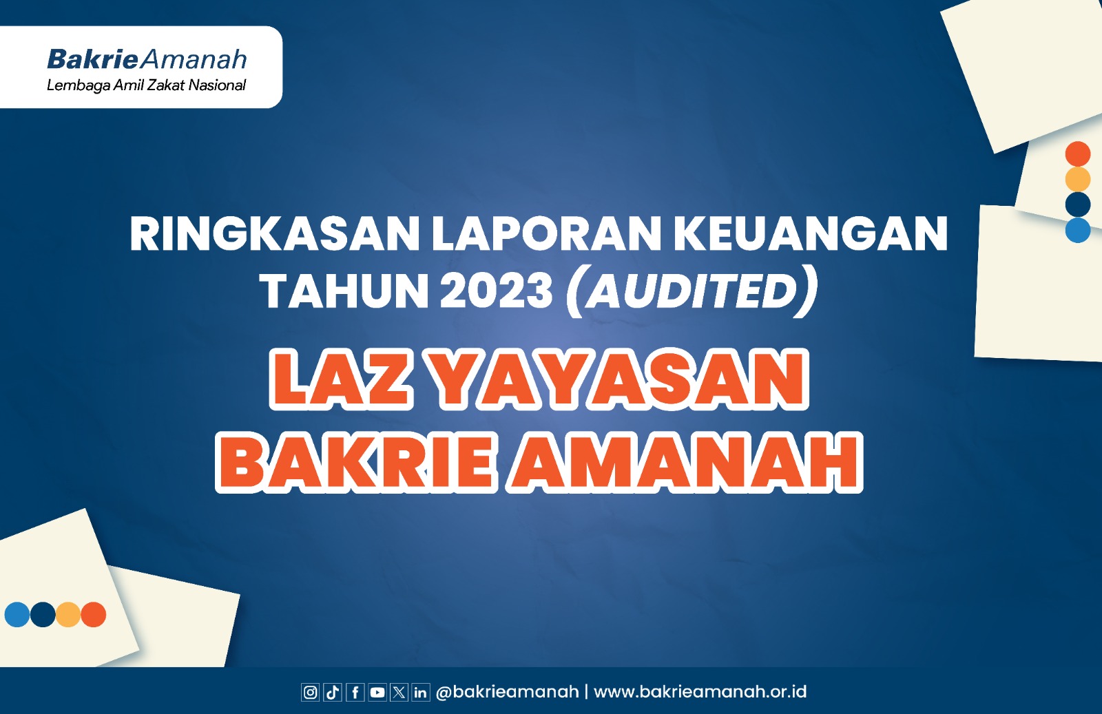Berikut ringkasan Laporan Keuangan Tahun 2023 LAZ Yayasan Bakrie Amanah (Audited). Terbit di Warta Pilihan pada November 2024. Berikut linknya untuk dapat di download dalam bentuk pdf.