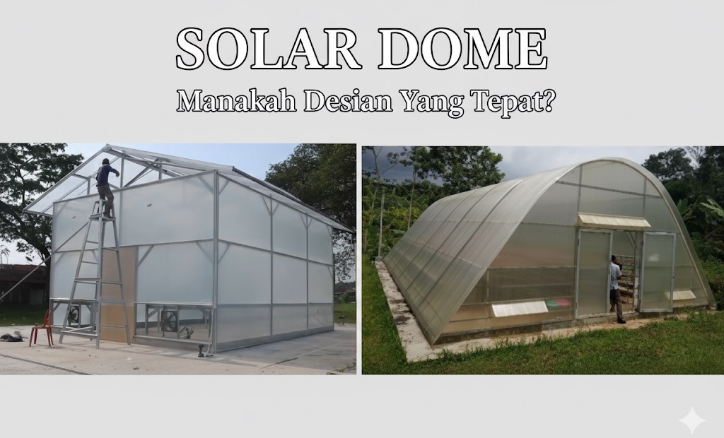 - Solar Dome dengan Aliran Udara Kurang Bagus: Beberapa solar dome yang ada di masyarakat sulit mengeringkan produk dengan cepat karena aliran udaranya sangat sedikit. Desainnya sering kali hanya mengejar suhu tinggi, tetapi sangat lembap.