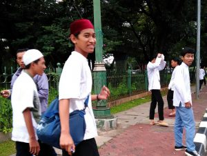 Wartapilihan.com, Jakarta – Sekumpulan remaja pria berbaju koko dan berkopiah putih tampak bergerombol di pertigaan Gambir, Jakarta, Jum’at (31/3) sore. Salah seorang