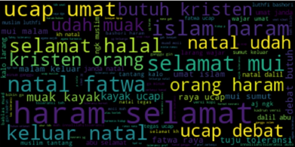 Sedangkan konten percakapan bisa dilihat pada gambar wordcloud dibawah ini, dimana percakapan didominasi masalah halal atau haram ucapan natal. Terkait hal tersebut tidak bisa lepas dari fatwa MUI. Namun ada fenomena menarik disini yaitu munculnya kata muak. Hal ini mempertegas apa yang sudah dijelaskan dibagian awal tulisan ini yaitu muaknya netizen atas keriuhan yang selalu terjadi menjelang natal. Saking muaknya para netizen dimunculkanlah tagar #tololransi sebagai tandingan dari toleransi. Bahkan ada netizen yang demi menunjukkan kemuakannya menegaskan tololransi harap dibaca menjadi tolorrasi karena termasuk idzghom mutaqaribain yaitu bertemunya lam dan ra seperti pada qul rabby dibaca menjadi qurrabby. Sehingga tololransi seharusnya dibaca tolorrasi. Ada-ada saja 😊
