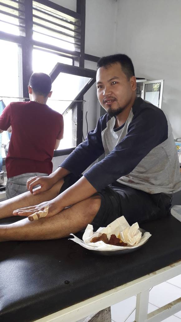 Sebagaimana Marjoni, ibu-ibu pengendara motor itu juga terpental ke aspal. Bocor kepalanya. Ia dirawat di rumah sakit Sanggau.