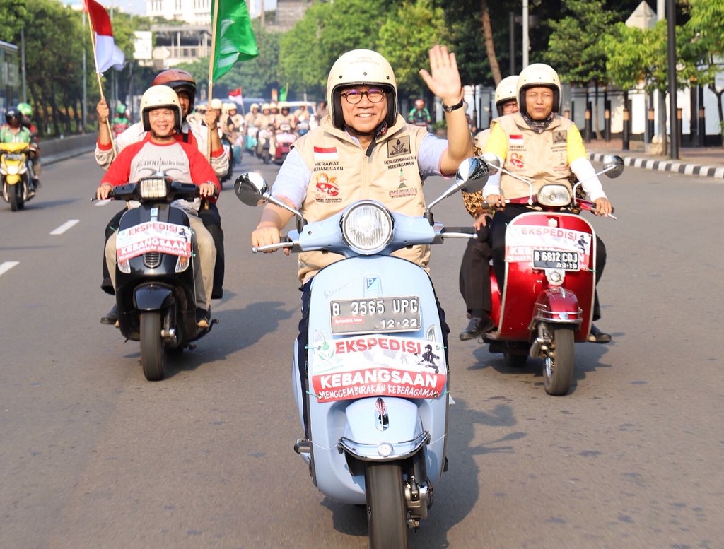 Zulkifli Hasan bersama Cak Imin dan Ignasius Jonan didaulat melepas rombongan Ekspedisi Kebangsaan dengan bervespa bersama melewati Masjid Istiqlal Jakarta.